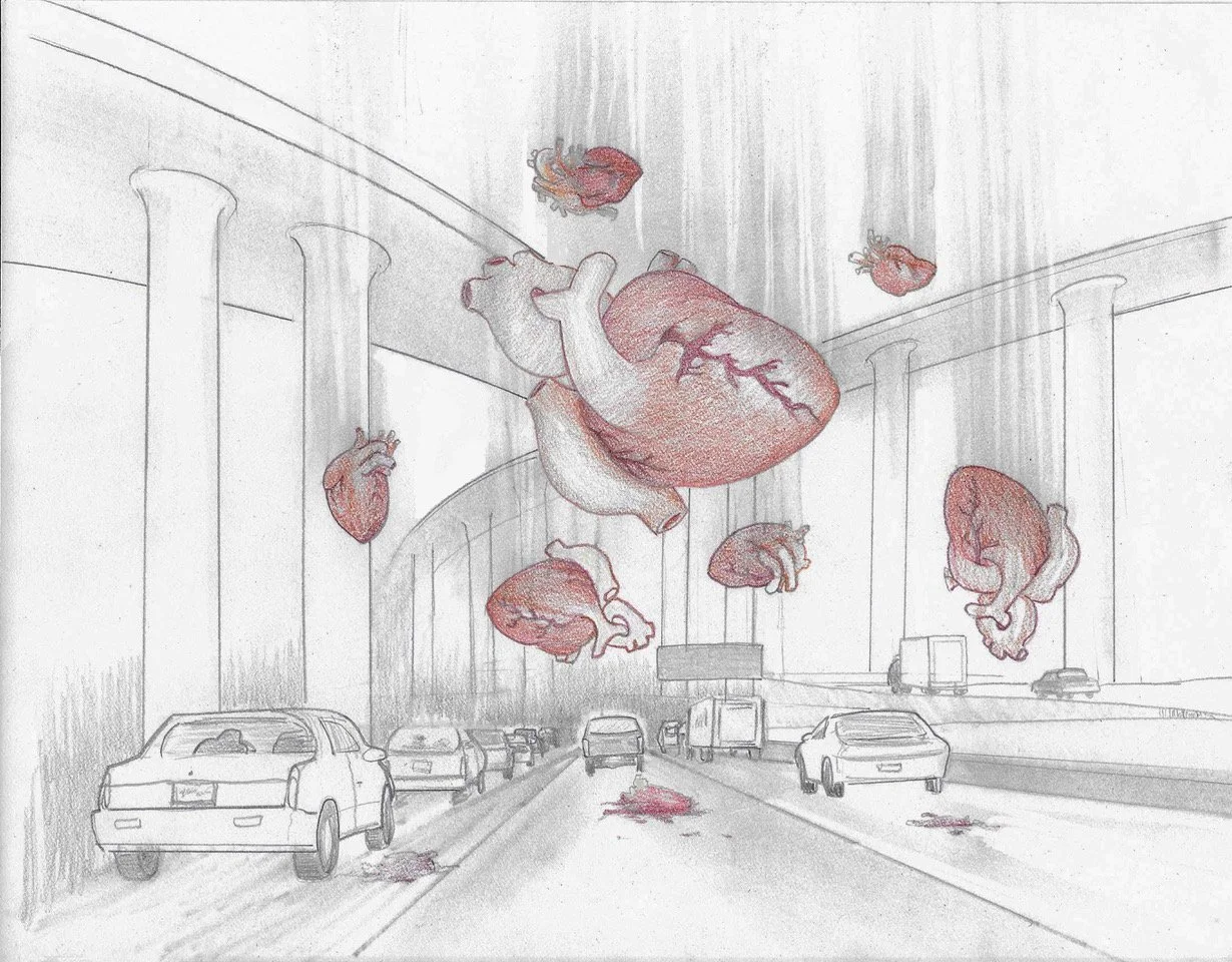 July, 2018, Hearts Raining on the Freeway Dream. Alison Cornyn